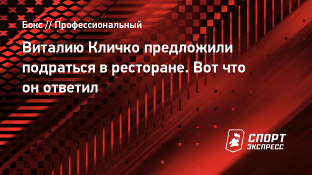 — Несколько дней назад заш-л в ресторан, а там компания сидела уже навеселе, — рассказал Кличко в эфире телеканала News One. - Один такой выходит и говорит: «Ты Кличко. Видел твои бои, но могу сказать, что я готов с тобой посоревноваться. И я уверен, что смогу тебя победить».