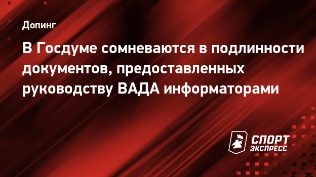 В Госдуме сомневаются в подлинности документов, предоставленных руководству ВАДА информаторами
