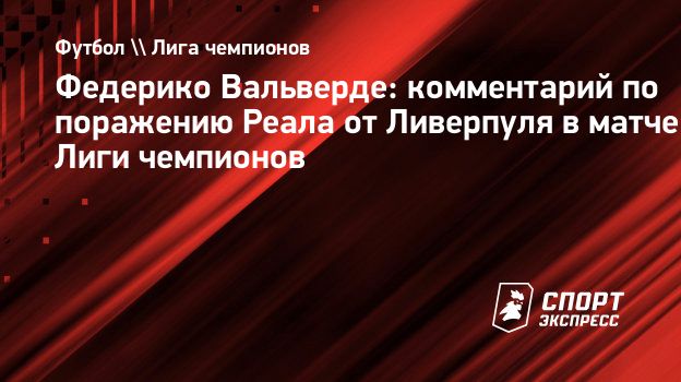 Капитан «Реала» Федерико Вальверде прокомментировал поражение от «Ливерпуля» (0:1) в матче 4-го тура общего этапа Лиги чемпионов.