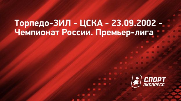 "СЭ" рад приветствовать всех любителей футбола! Здесь вас ждет онлайн-трансляция матча Торпедо-ЗИЛ (Москва) – ЦСКА (Москва). Чемпионат России. Премьер-лига, 24-й тур Матч пройдет 23 сентября 2002 года на стадионе "Торпедо" им. Э. А. Стрельцова (Москва, Россия). Начало - в 18:00 по московскому времени.