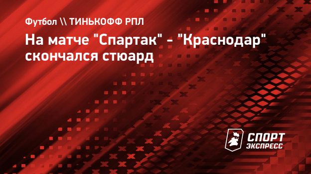На матче 16-го тура премьер-лиги "Спартак" – "Краснодар" (3:2) скончался один из контролеров-распорядителей, информирует официальный сайт РФПЛ. Ранее стало известно, что на встрече также умер префект Центрального административного округа Москвы Виктор Фуер.