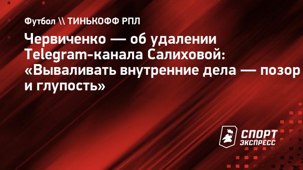 Экс-президент «Спартака» Андрей Червиченко прокомментировал «СЭ» удаление Telegram-канала Заремы Салиховой, которая ранее входила в совет директоров клуба.