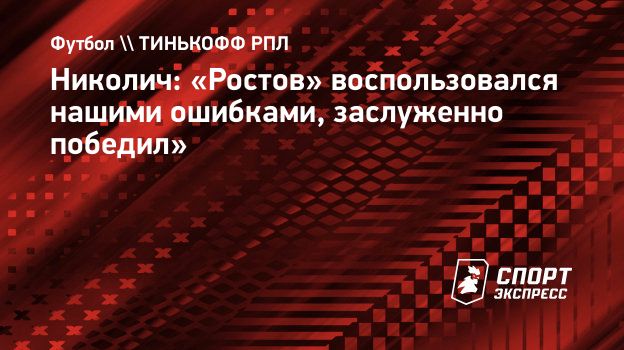 Николич: «Ростов» воспользовался нашими ошибками, заслуженно победил»