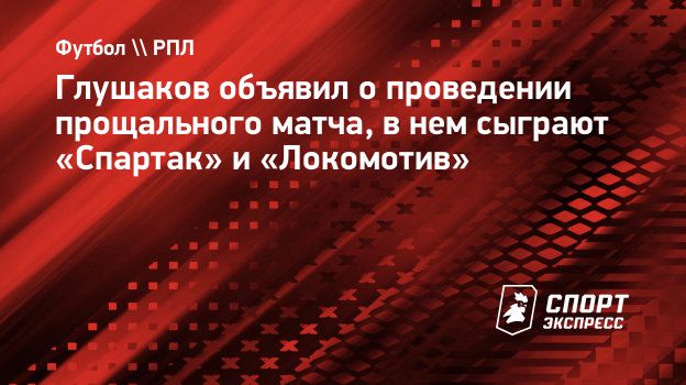 Глушаков объявил о проведении прощального матча, в нем сыграют «Спартак» и «Локомотив»