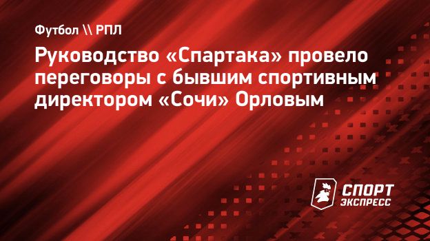 Как стало известно «СЭ», бывший спортивный директор «Сочи» Андрей Орлов посетил офис «Спартака» и провел переговоры с руководством московского клуба на предмет возможного сотрудничества.