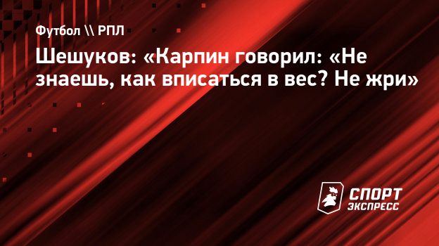 Шешуков: «Карпин говорил: «Не знаешь, как вписаться в вес? Не жри»