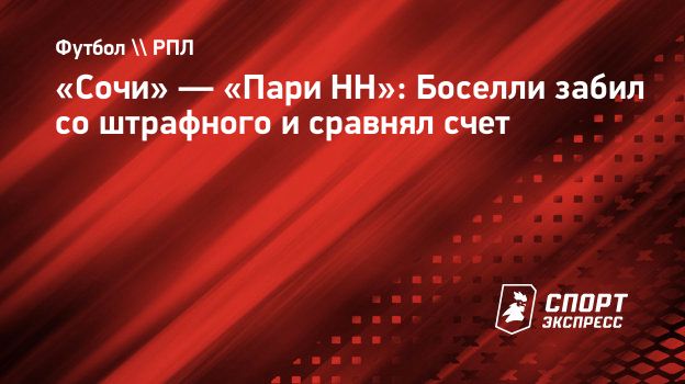 «Сочи» — «Пари НН»: Боселли забил со штрафного и сравнял счет