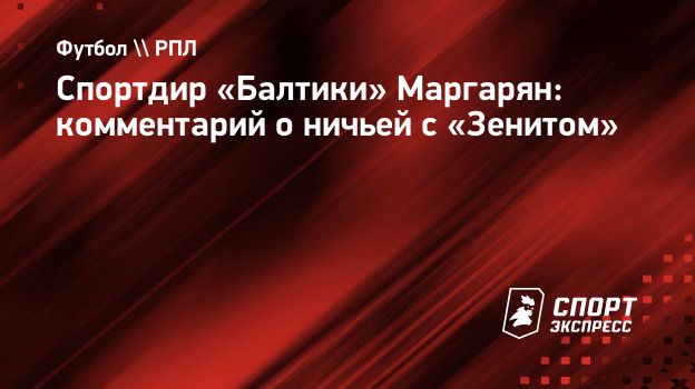 Спортивный директор «Балтики» Армен Маргарян в разговоре с «СЭ» прокомментировал ничью с «Зенитом» (0:0) в матче 8-го тура чемпионата России.