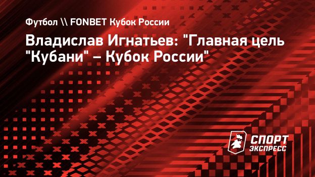 Владислав Игнатьев: "Главная цель "Кубани" – Кубок России"