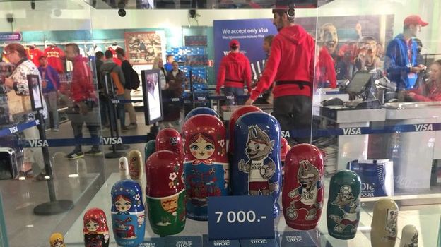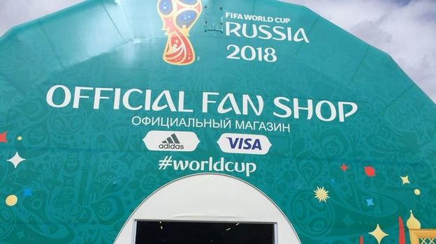 Интересно, что расплатиться в фан-шопе можно только наличными или картой компании-спонсора ФИФА (и никакими другими).
