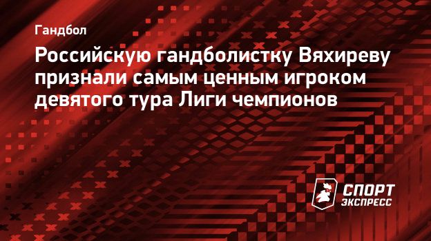 Российскую гандболистку Вяхиреву признали самым ценным игроком девятого тура Лиги чемпионов