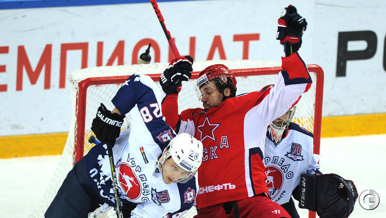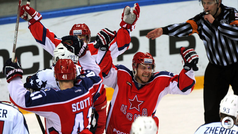 ЦСКА обыграл "Торпедо" (4:2) в матче регулярного чемпионата КХЛ. В составе победителей по шайбе забросили Максим Мамин, Игорь Ожиганов, Богдан Киселевич и Грег Скотт. У нижегородцев отличились Каспарс Даугавиньш и Николай Жердев. ЦСКА и СКА, разгромивший "Сочи" - 6:2, набрали одинаковое количество очков в турнирной таблице Западной конференции – по 134, однако московская команда по-прежнему идет на первой строчке.