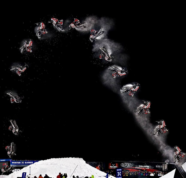 Храбреца зовут Леви Лавалле. Американский гонщик на снегоходах и 13-кратный чемпион Зимних игр — соревнований для экстремалов.